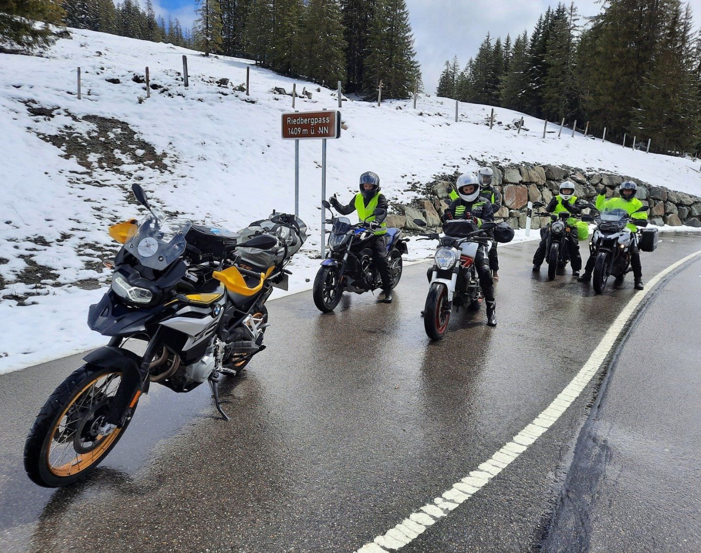In einer Kombination aus einem Sicherheits- oder Technik-Training und einer geführten Tour hast Du die Gelegenheit, Neues zu erlernen sowie Bekanntes zu verbessern und zu stabilisieren. Auch am Saisonanfang ist es optimal, auf einem abgesperrten Übungsplatz Grundtechniken aufzufrischen und zu trainieren wie Sitzposition, Blickführung, Bremsen oder Ausweichen. Durch die geringe Gruppengröße von max. sechs Teilnehmern hat der erfahrene und zertifizierte Trainer ausreichend Raum und Zeit für individuelle Tipps.